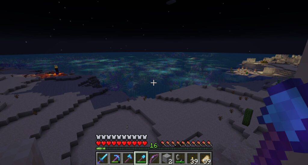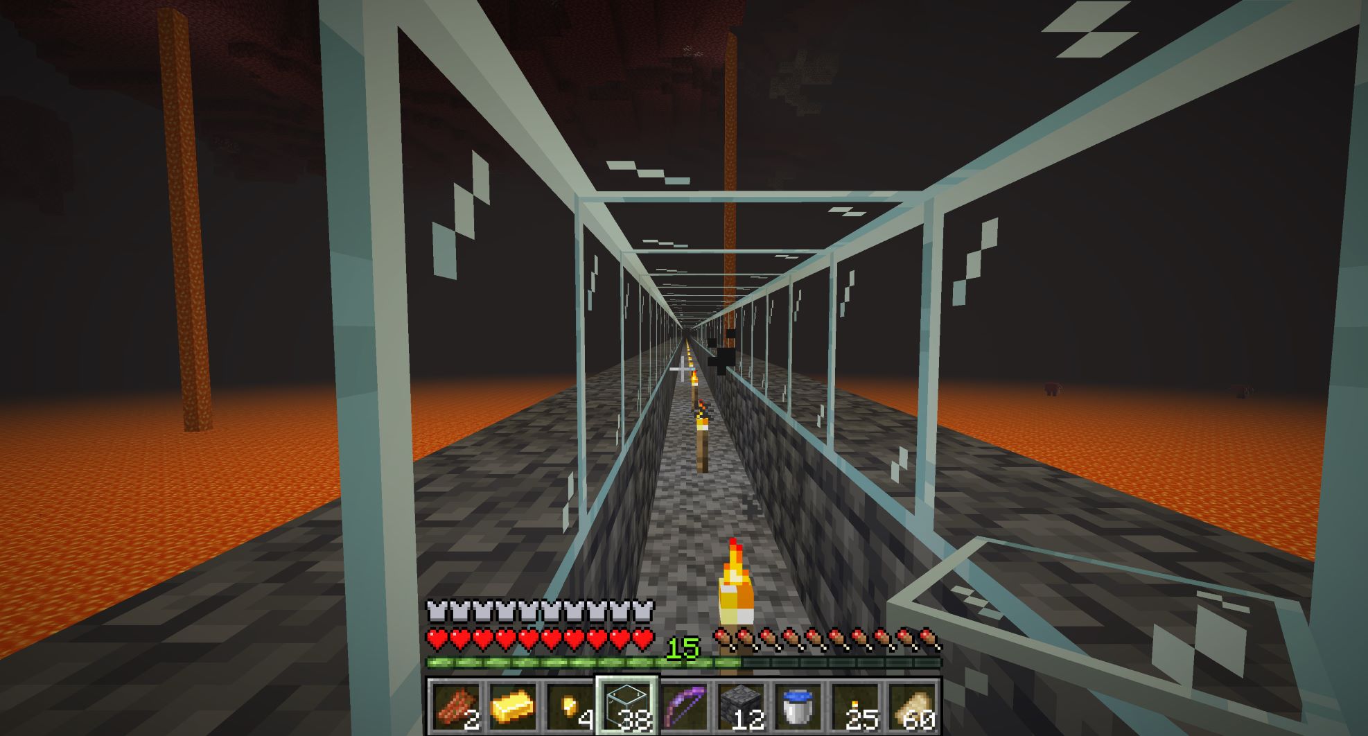 ネザー要塞を探すときに作った通路からオーバーワールドに戻れば、暖かい海に近いところに着きそうだ。