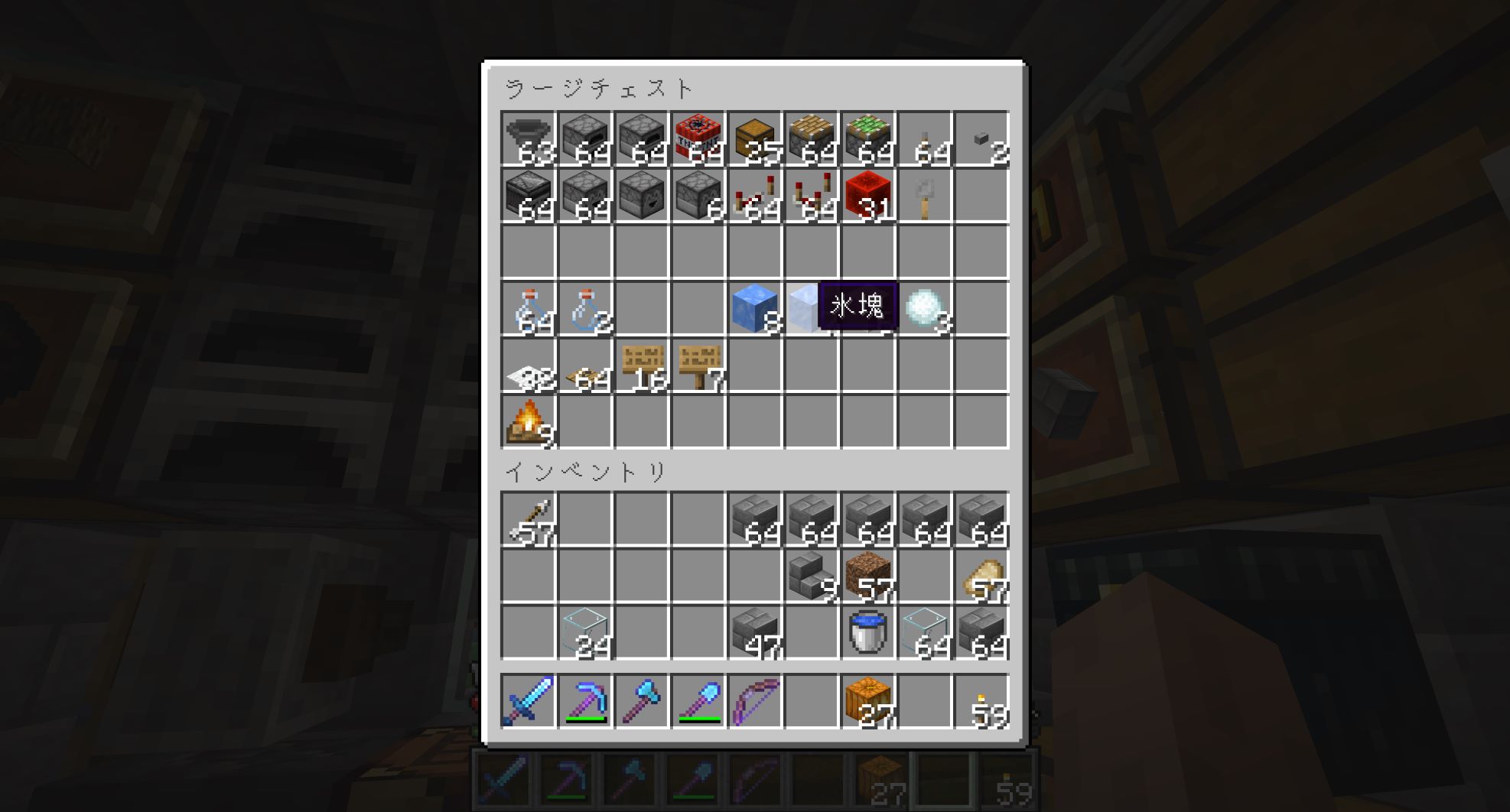 ラージチェスト満タンぶん放り込んでおいたら、結構、間に合うかも。
