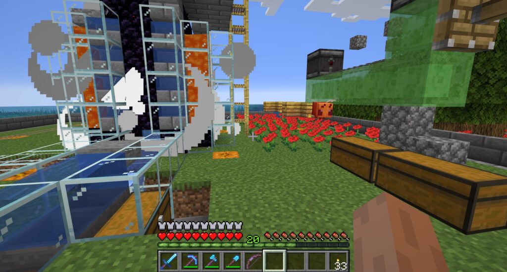 アイアンゴーレムトラップの鉄を売ってエメラルドで交易できるものも不自由しない。