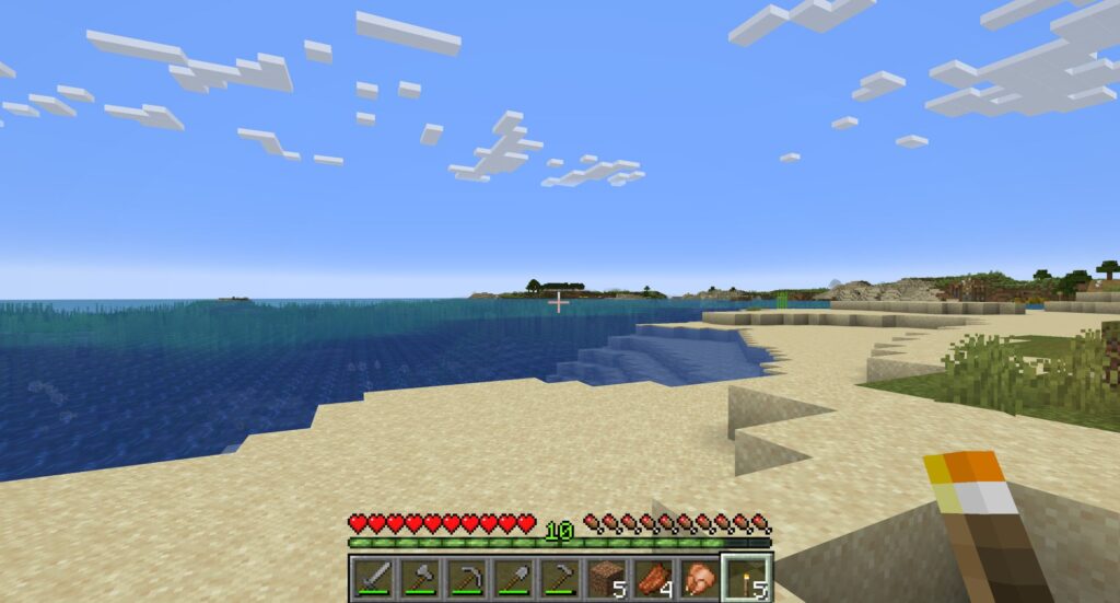 高さ5、床の厚さ1、つまり高度Y=64の海抜ゼロメートルで、9ブロック先に、X=0、Z=0の座標上の座標上の「原点」がある。