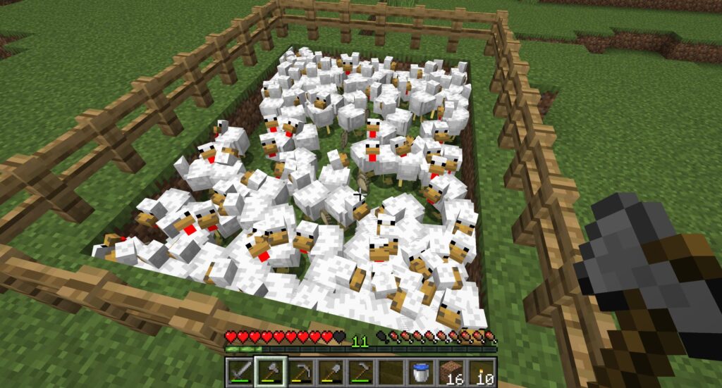 増えてたのは、種を食わせて卵を投げた時点で増えてたのだが、ヒヨコが食べごろに育っていた。ニワトリは増えるのが早いので、序盤の食料としては手ごろである。