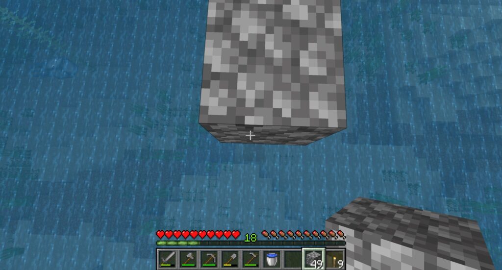 スニークしながら後ろ歩きで右クリックで架橋できる。素材は土だとエンダーマンにもっていかれたり、うっかり叩いたら素手でも壊れたりするので石系のものがいいだろう。