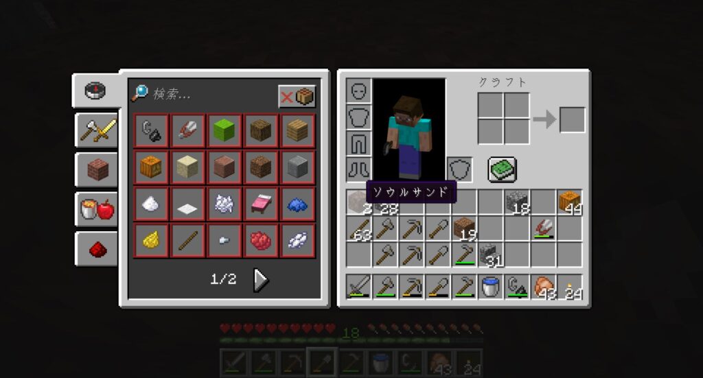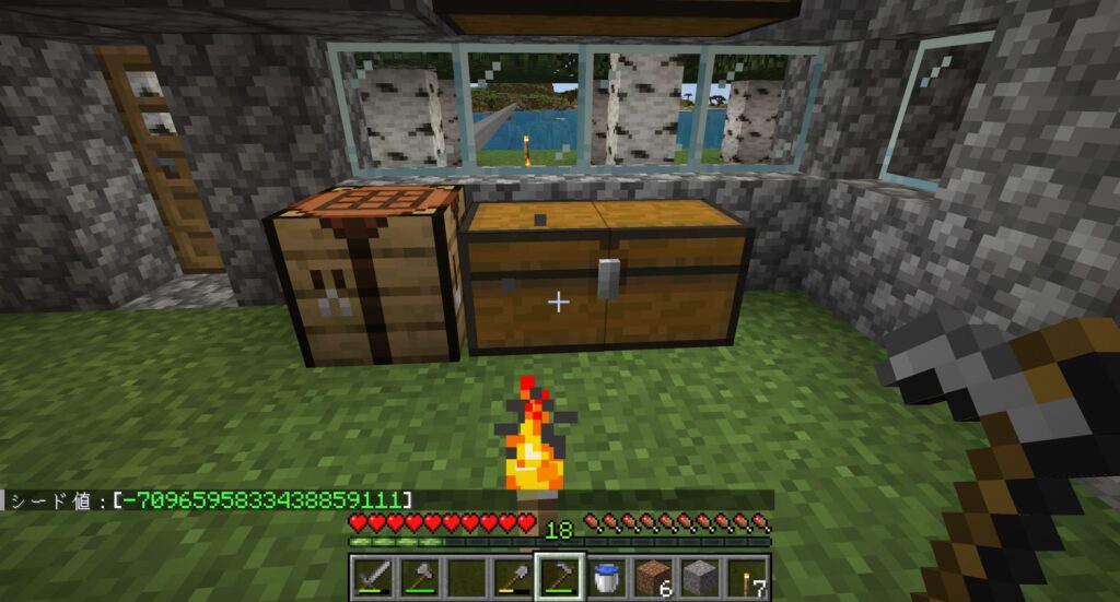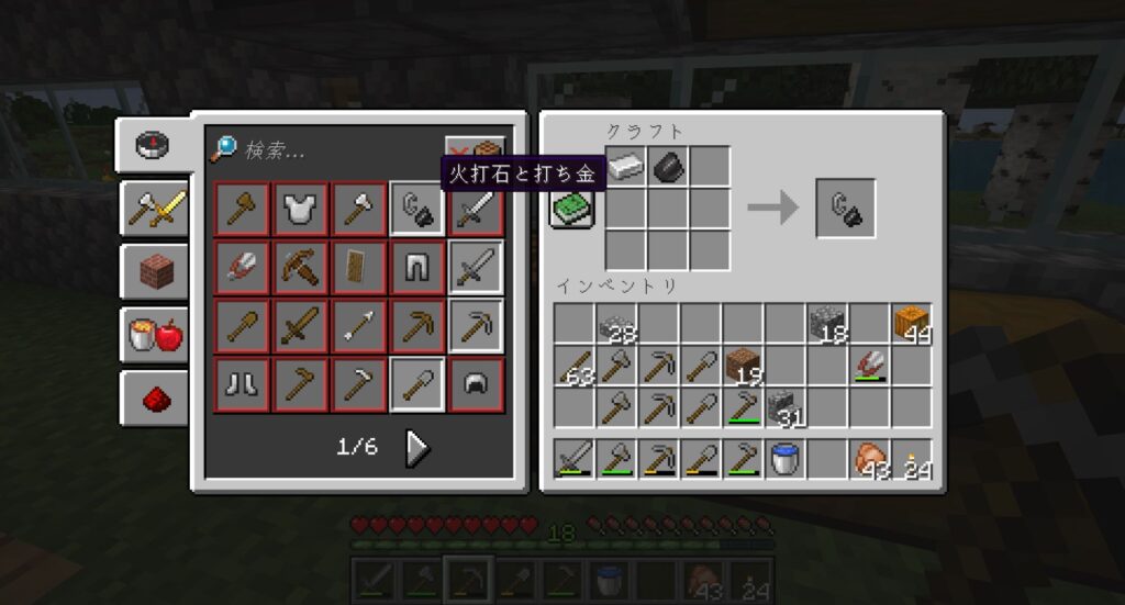 最後のいっこの鉄を使って、「火打石と打ち金」をクラフトする。