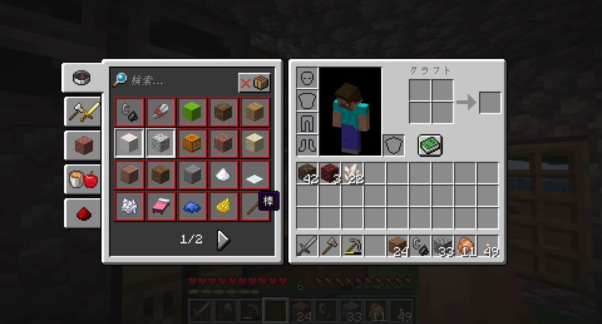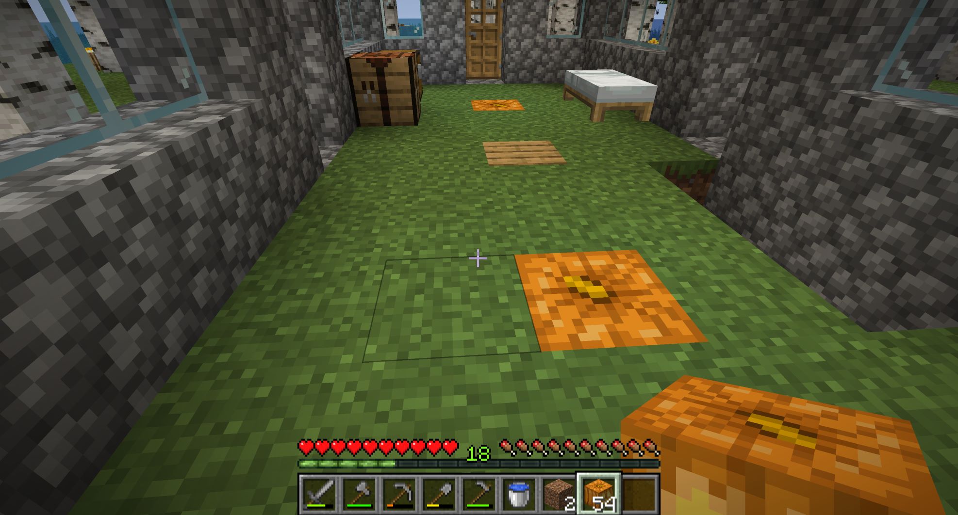 もうちょっとすると資材管理のための額縁を作る皮が必要になるので食糧は腹持ちが良くて皮も入手できる牛に変わり、必要な量の皮が入手できると牛と同等に腹持ちが良くて飼料コストが安い豚になる。牛を増やすのに必要な小麦に比べ、豚を増やすのに必要なニンジン・ジャガイモは同じ手間で収穫量がずいぶん多いのだ。