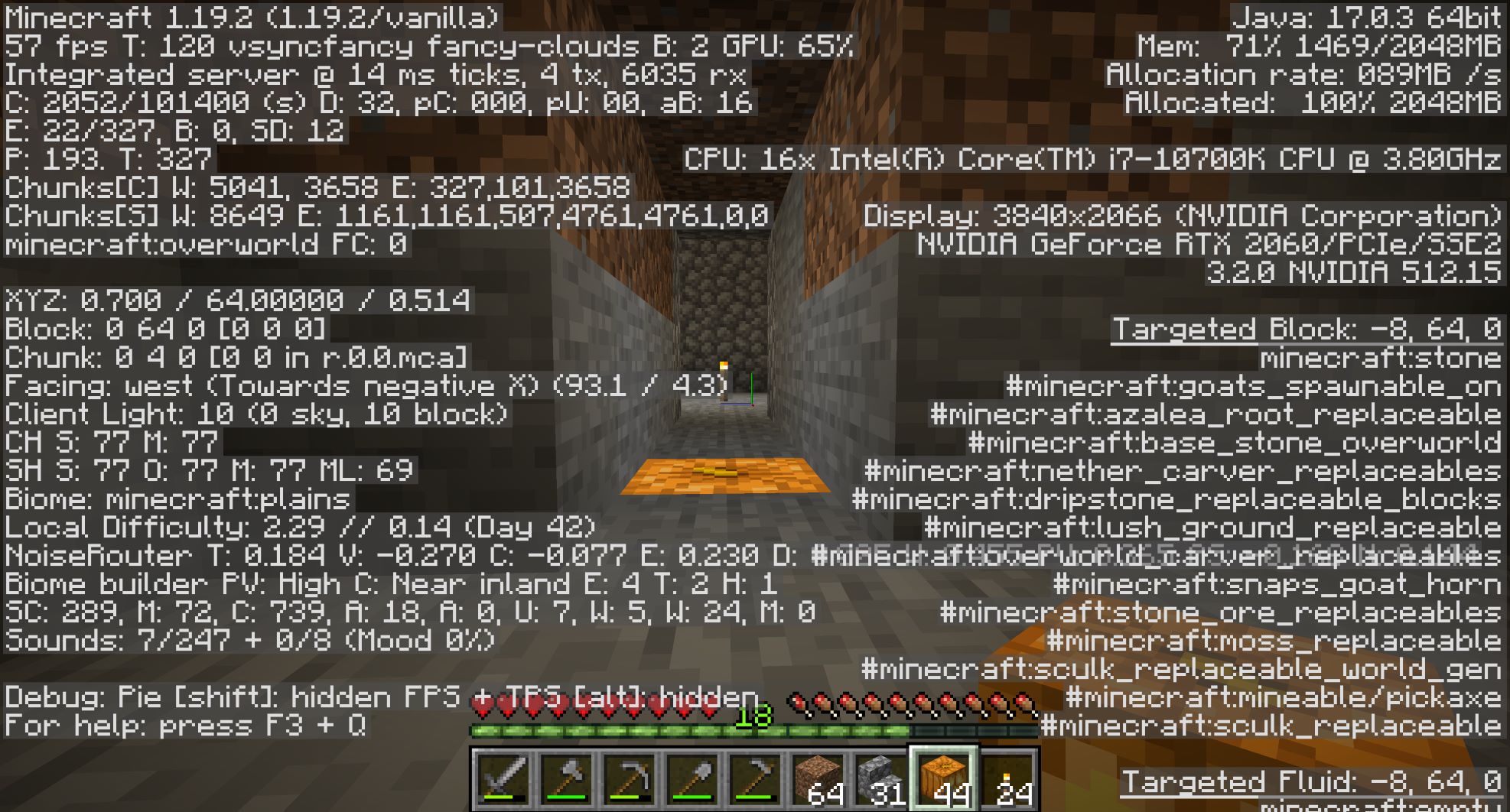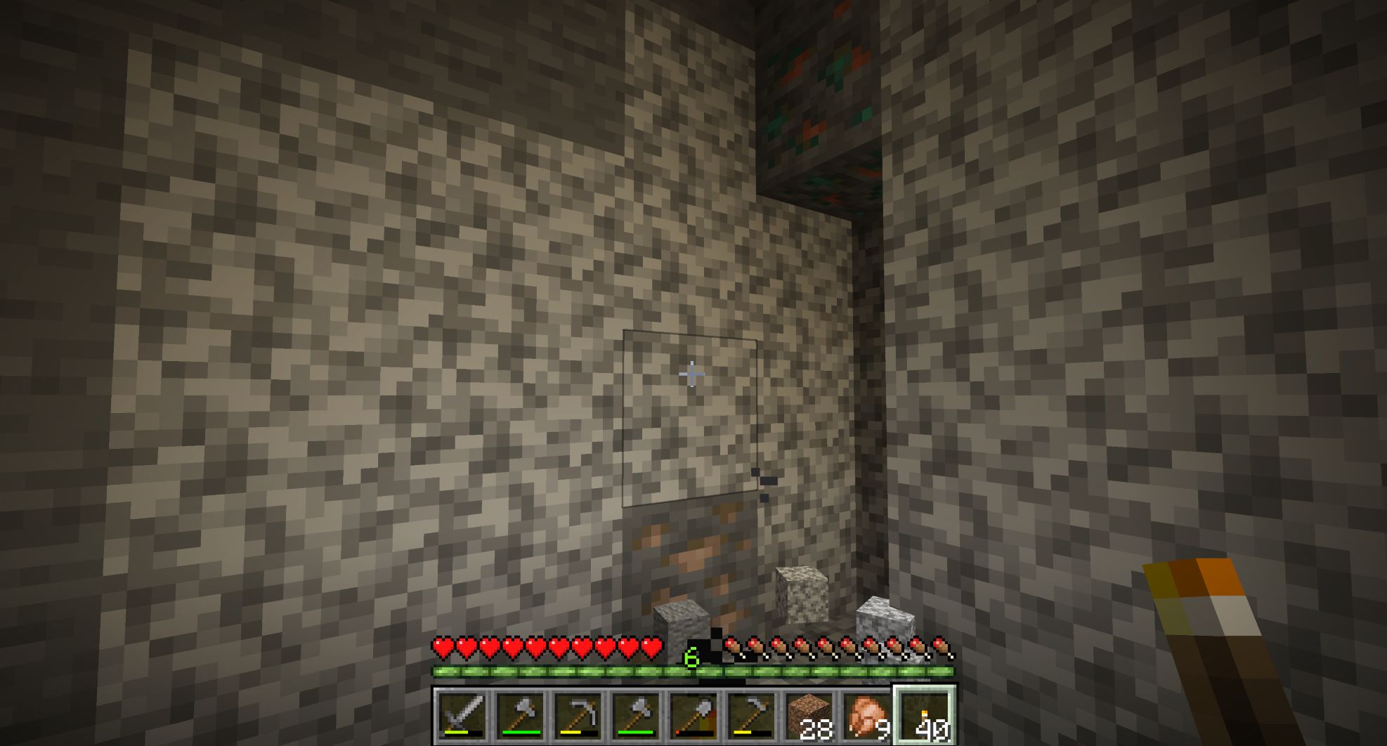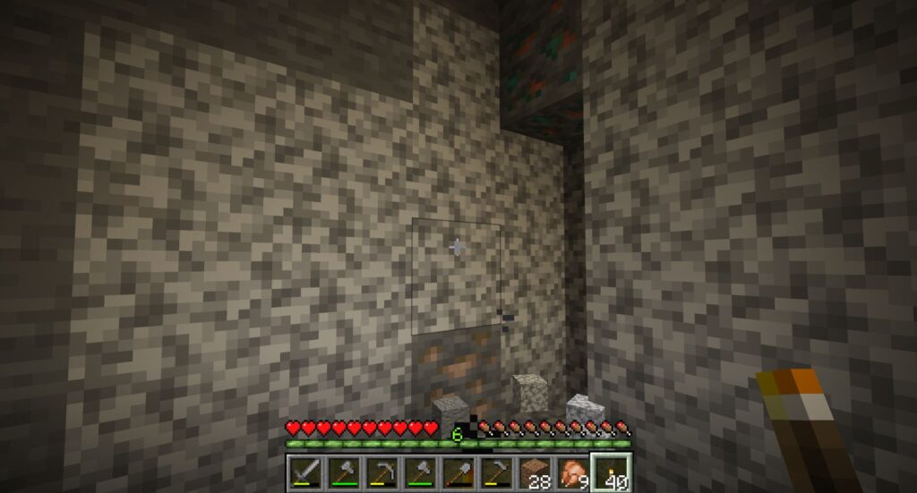 せっかくだから地下に物置き用のフロアを増やしながら、まずはスライムが湧くY=39まで掘りすすめよう。