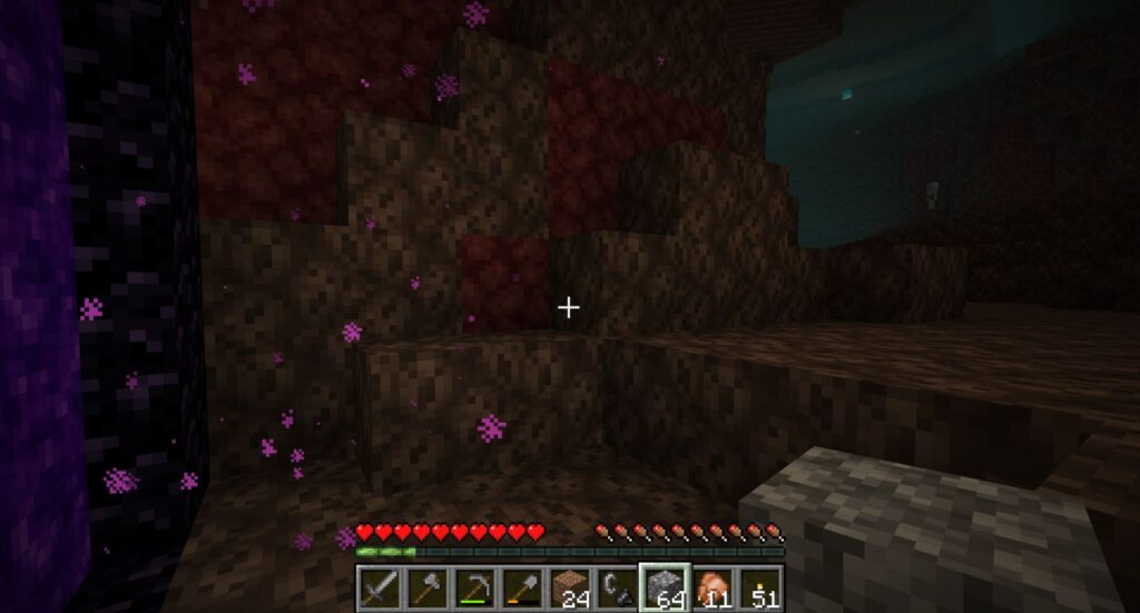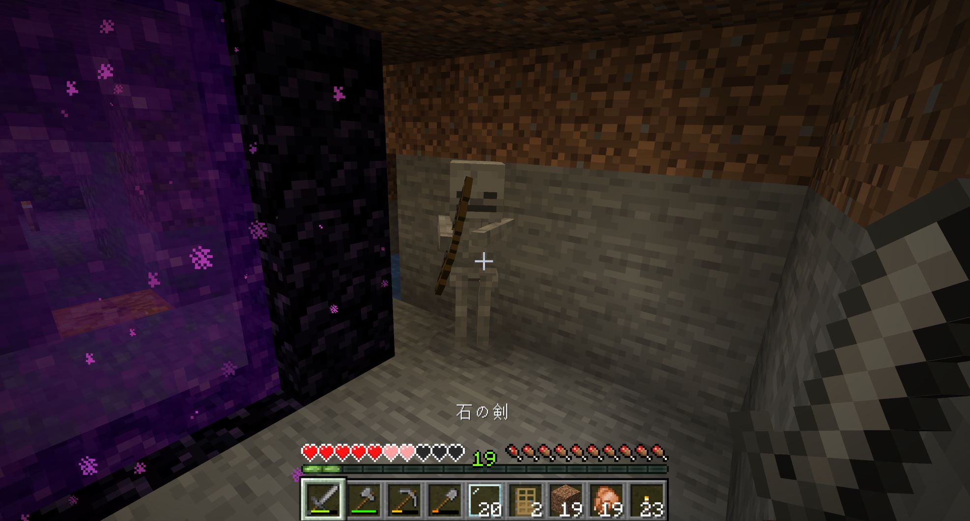 ネザー側にも建物を作って、スケルトンの射撃を避けないといけないな。