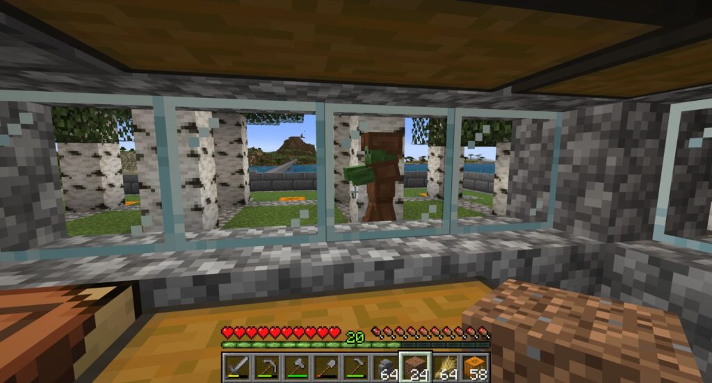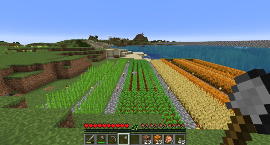 まぁ、現状でも建物に逃げ込めば夜を越せるが、農作業しているときに夜になっちゃうとモンスターが湧いてきて攻撃されるし、土はエンダーマンに持っていかれて勝手に地形が変わっちゃう。