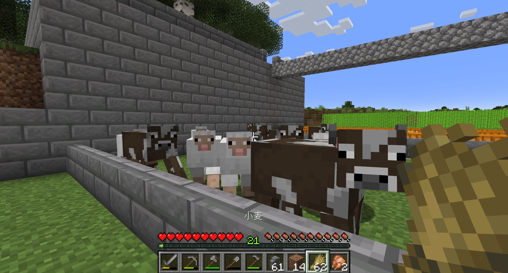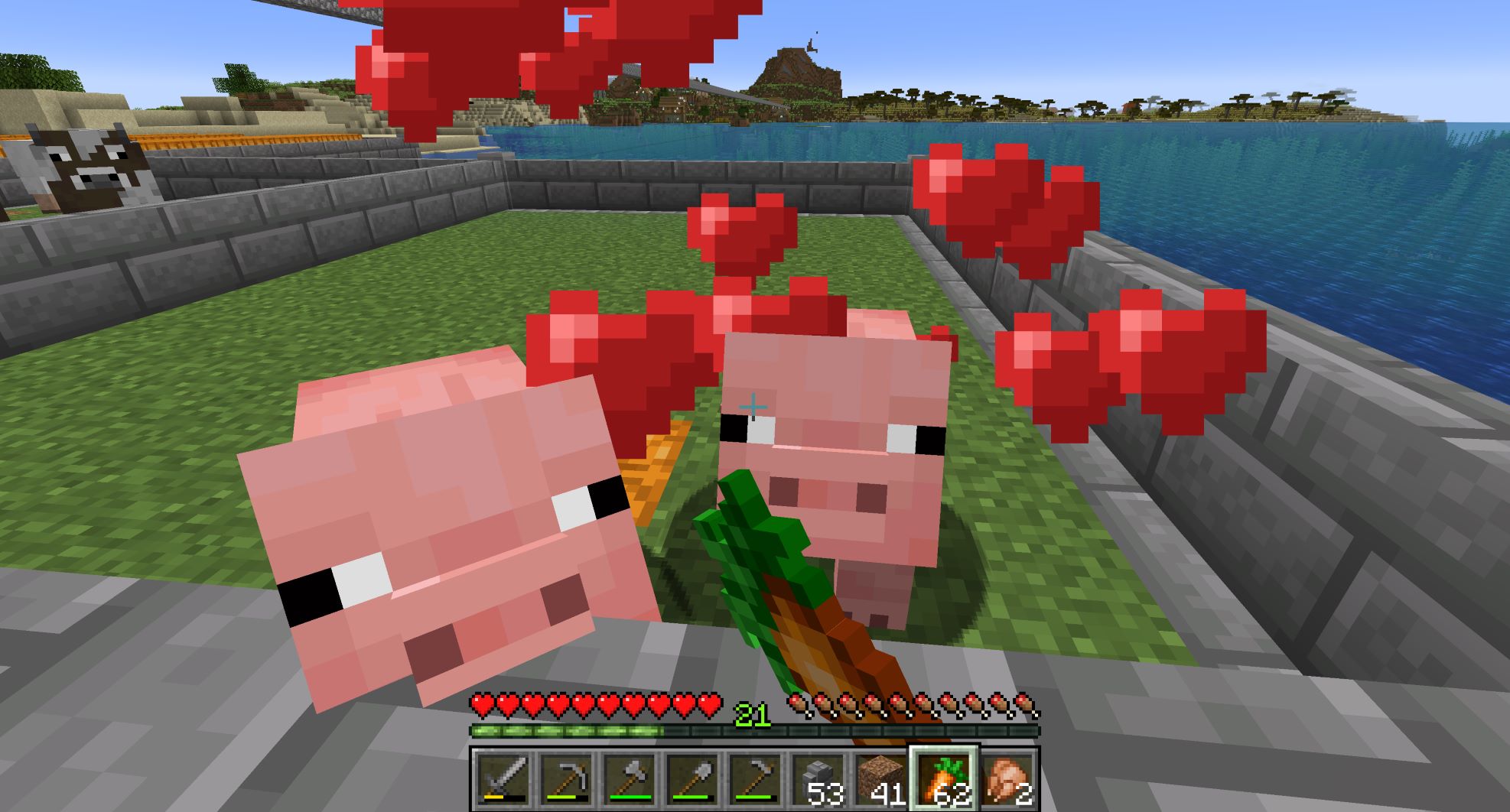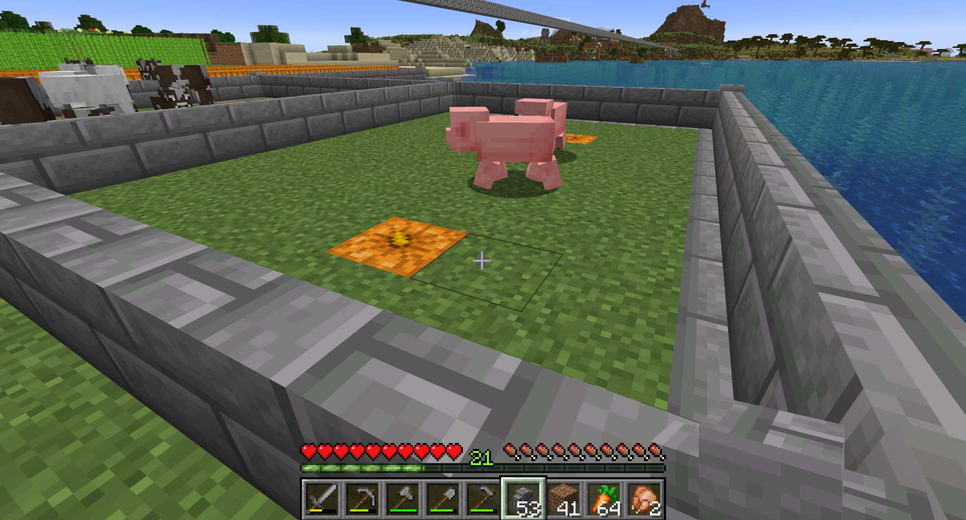 豚はニンジンかジャガイモで呼び寄せるので、小麦に寄って来る牛や羊と同時には確保できない。