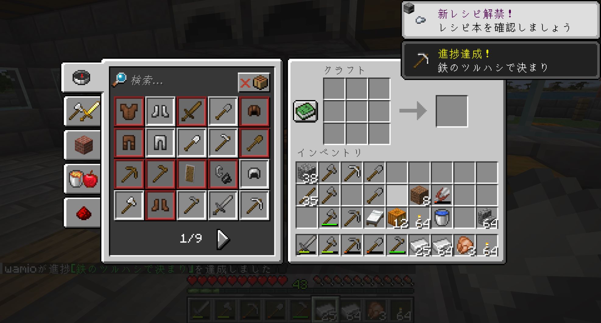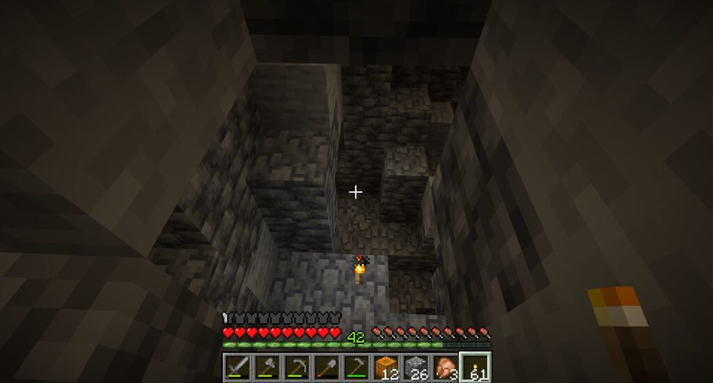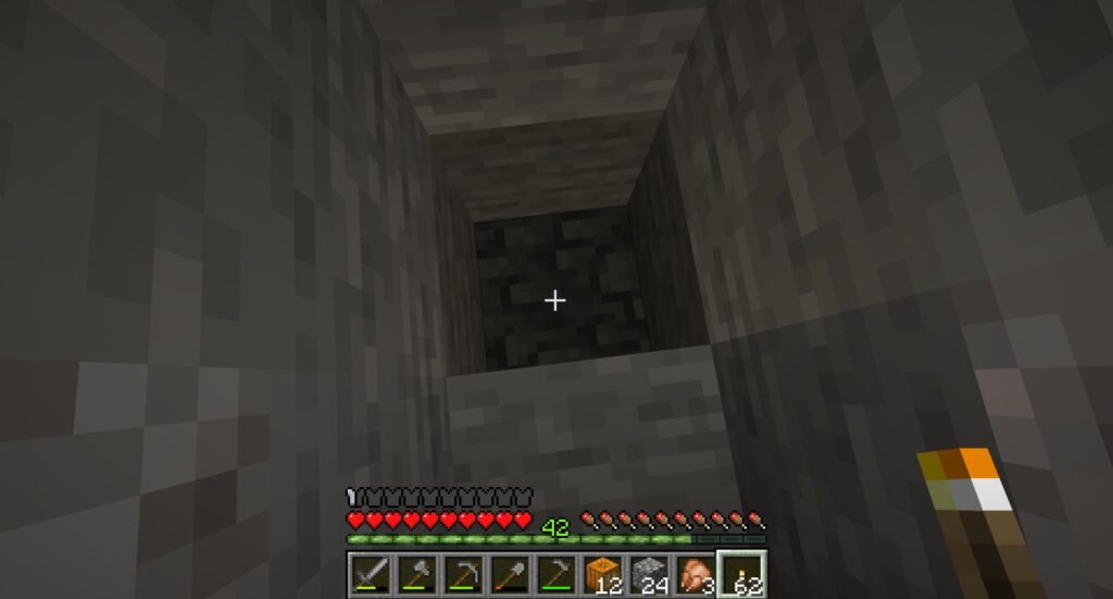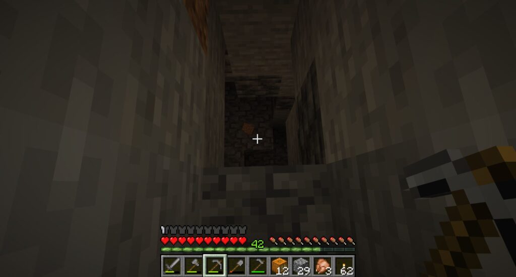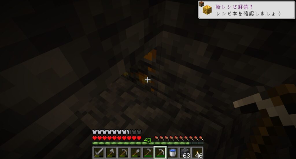 金とかレッドストーンとかもあったけど、石のツルハシでは掘れなかったんだ。