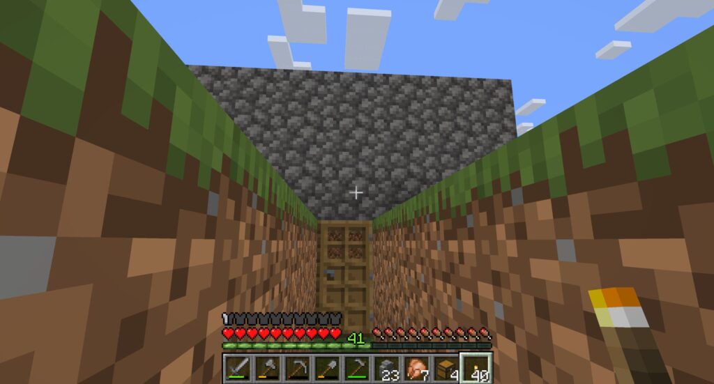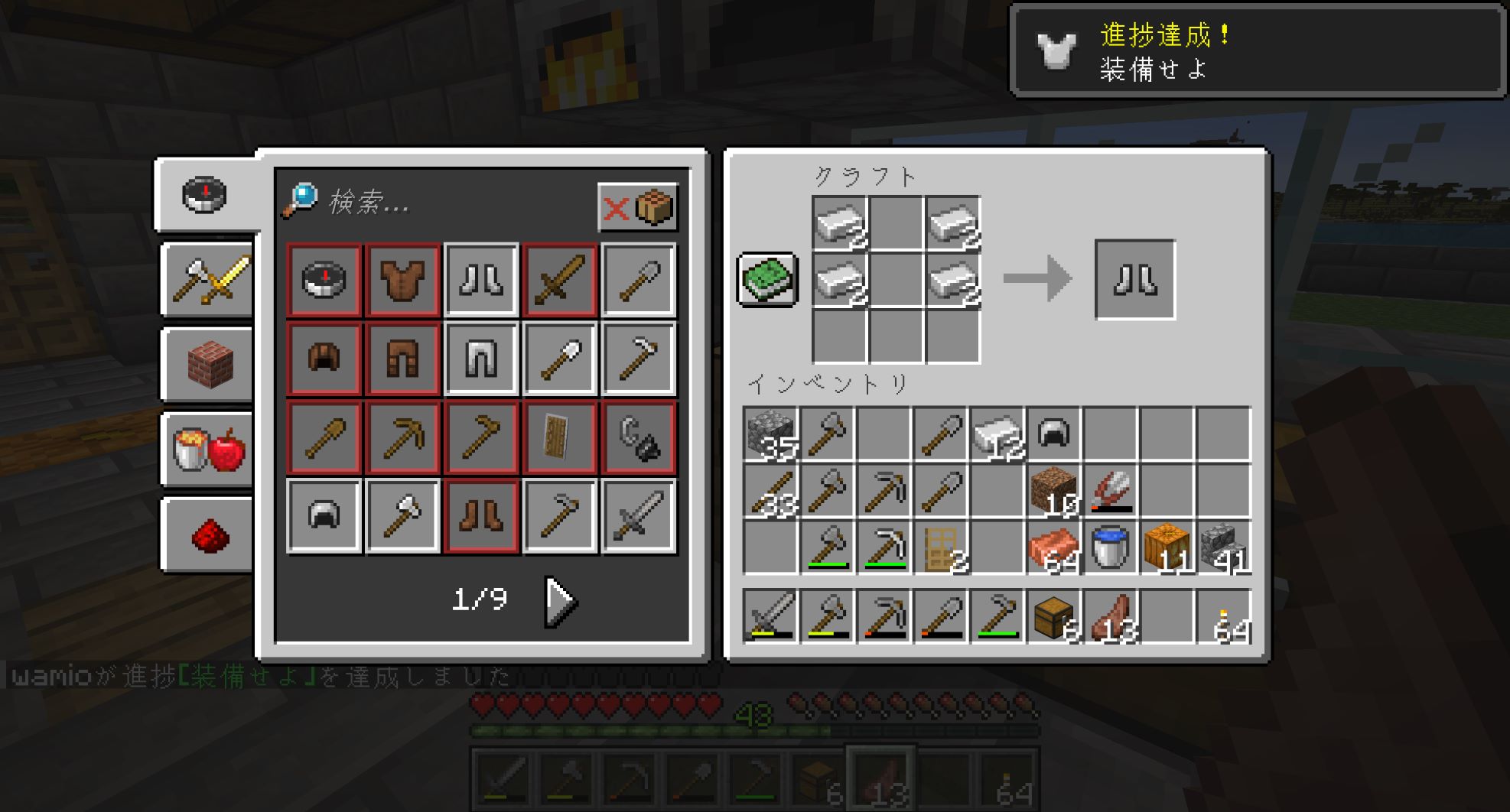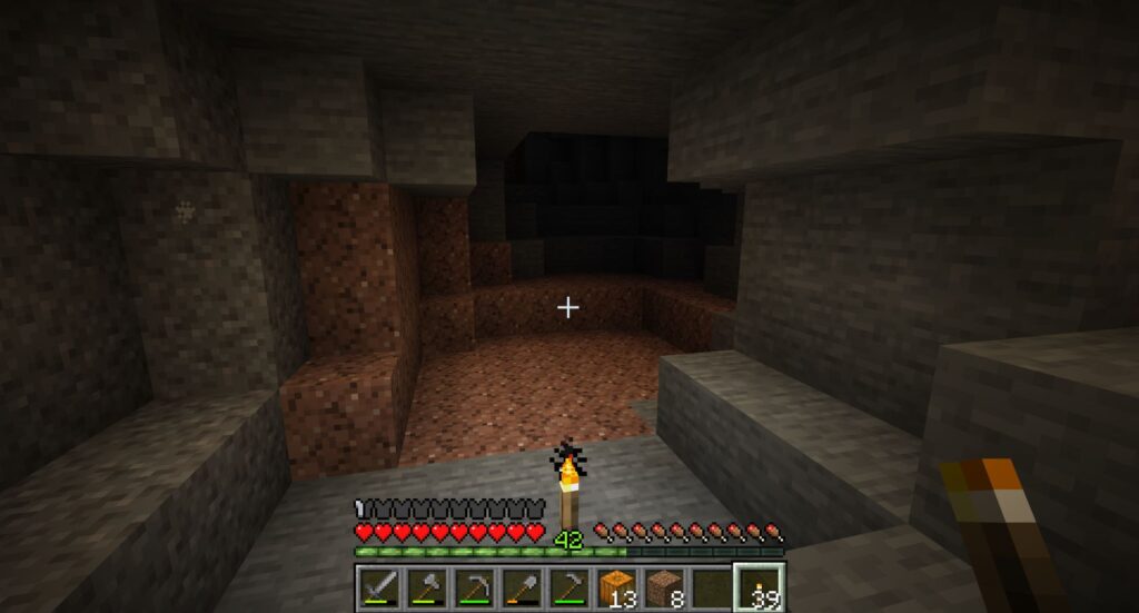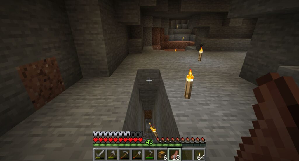 金とかレッドストーンとかもあったけど、石のツルハシでは掘れなかったんだ。