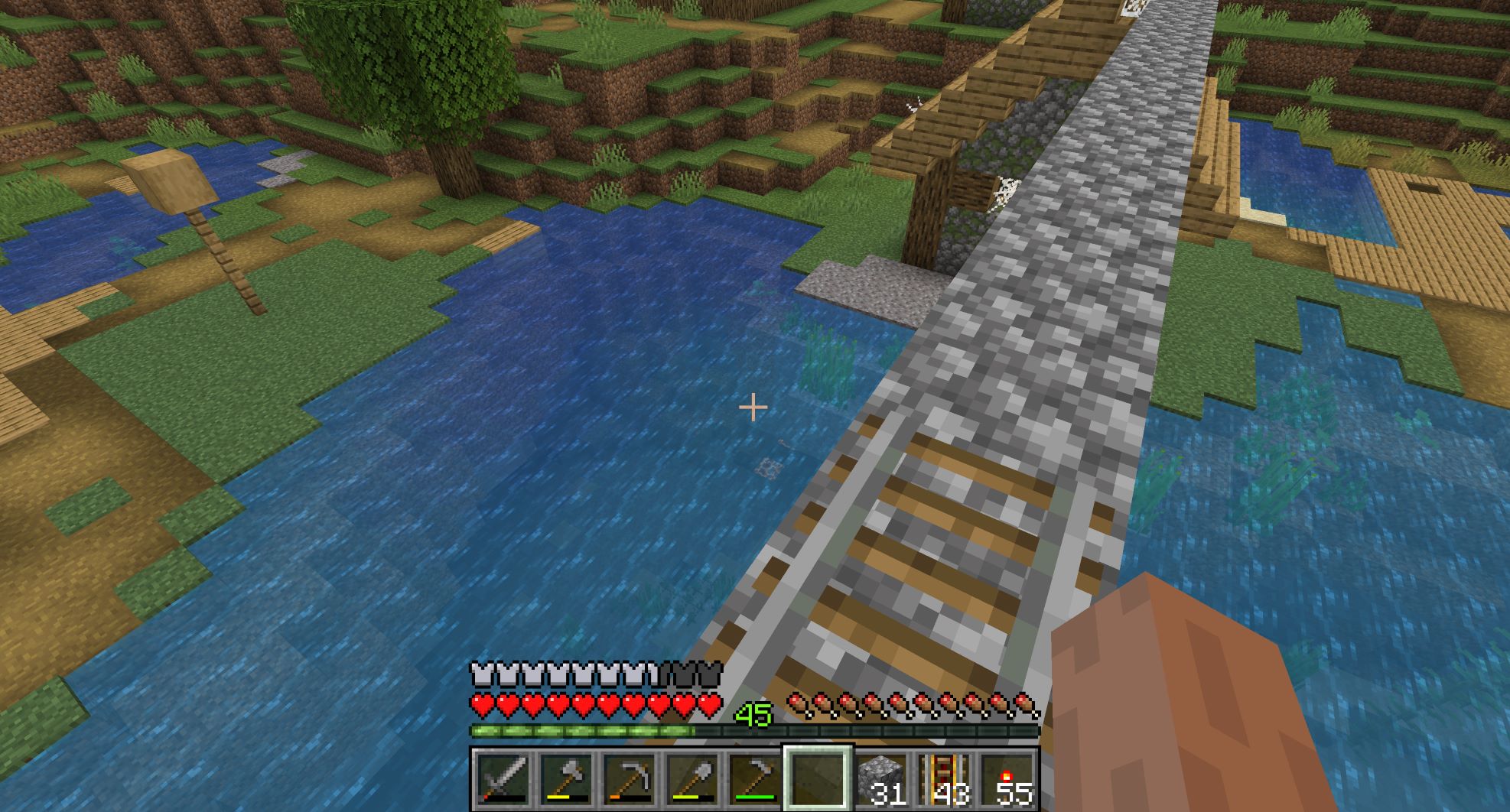 マインクラフトでは、下から上に登るのはブロックを積み上げるだけで簡単だし、地面を掘って下に行くのも簡単だが、足もとに何もない空中の高いところから降りるのは命がけである。