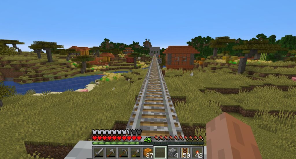 さっそく、村までレールを引いちゃう。