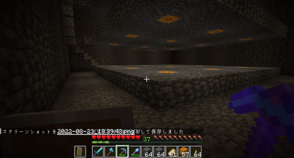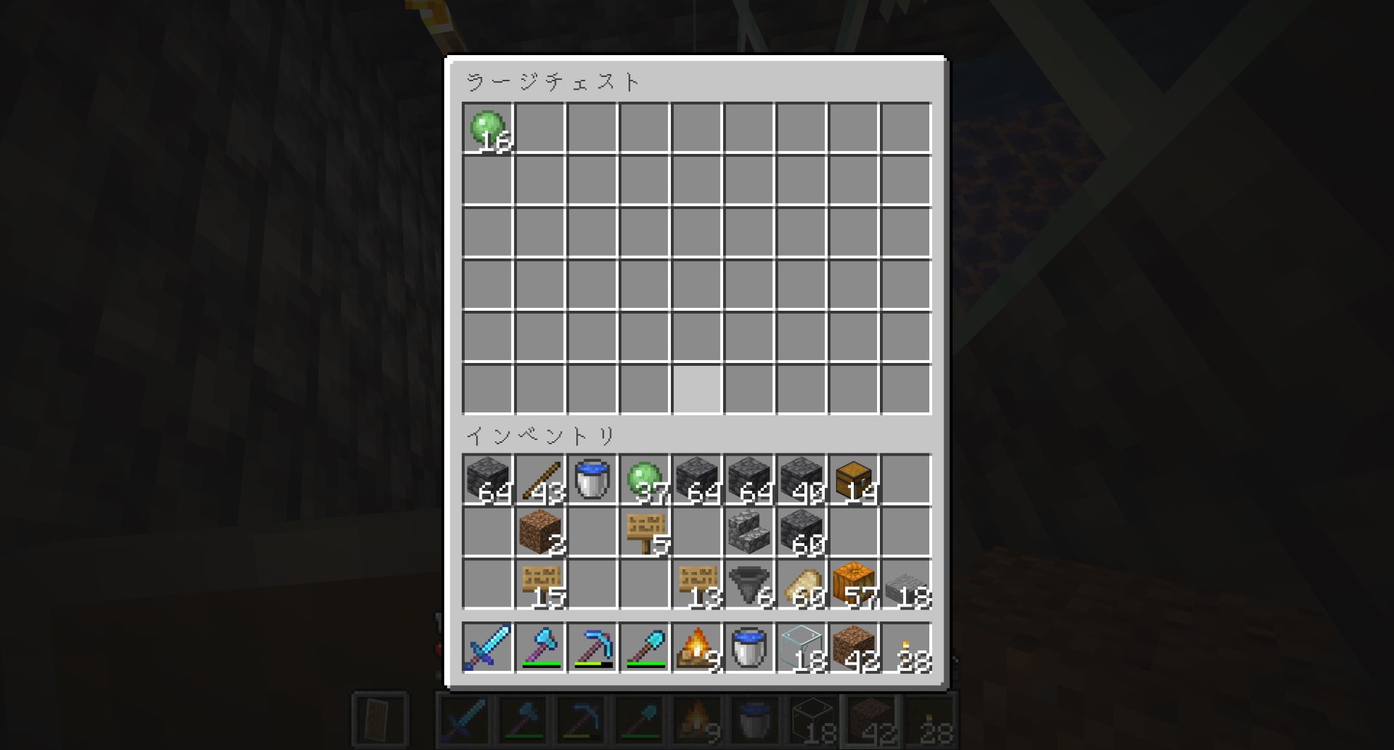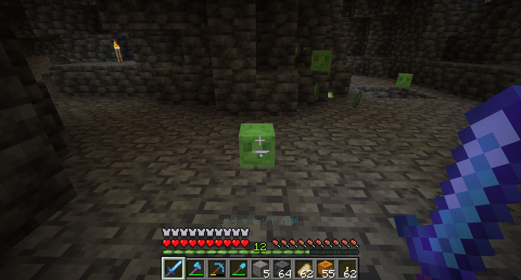 スライムチャンクを掘り進んでいくと、結構、深くなってきたのか、ダイヤモンドもでてきた。このくらいでいいかなぁ。