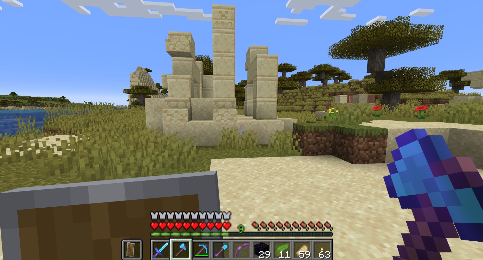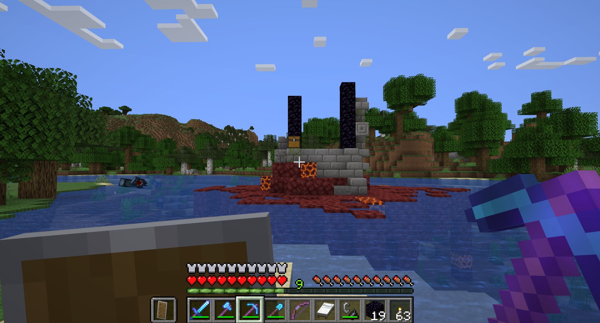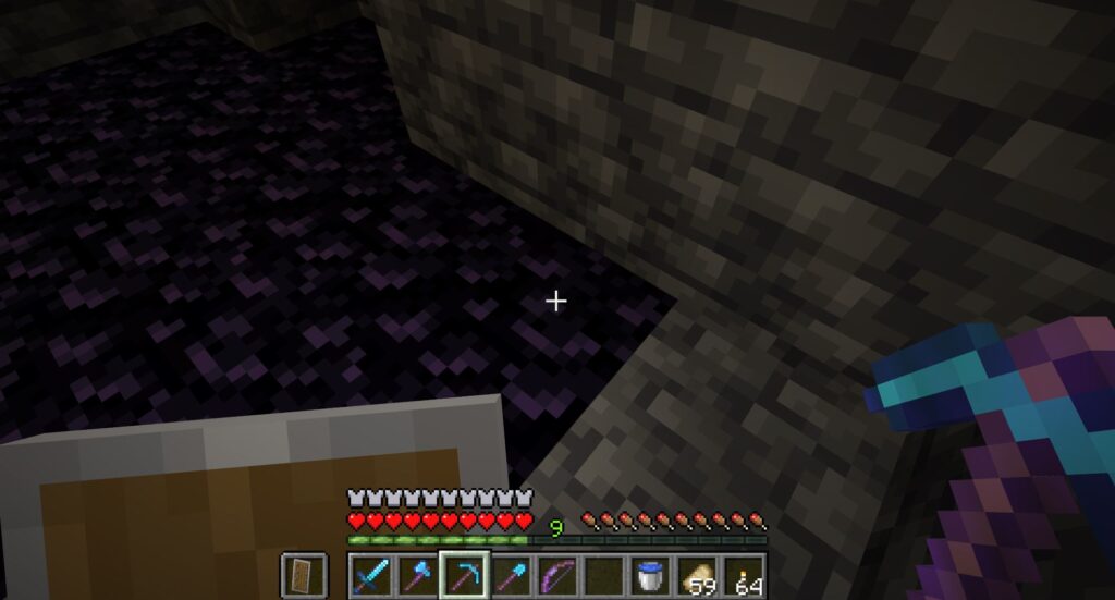 使って壊して使いまわしできるのだが、黒曜石じたいは溶岩に水をかけると現れるし溶岩は深くまで掘れば特に珍しいものではないので、採りためておこう。