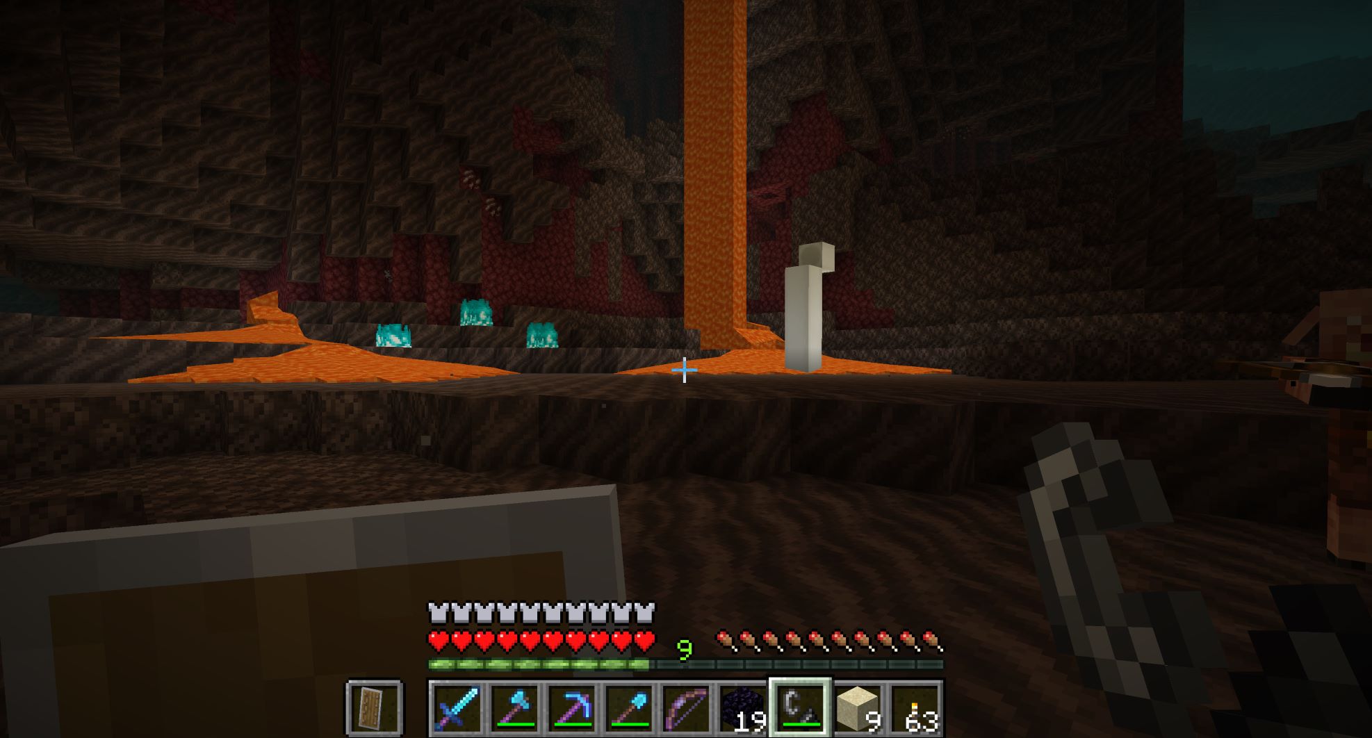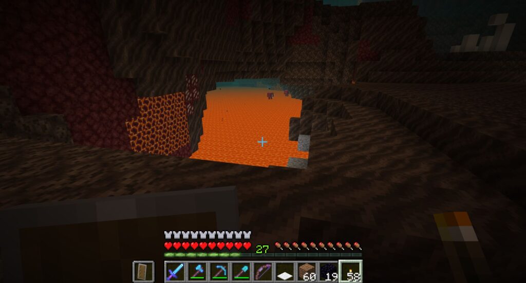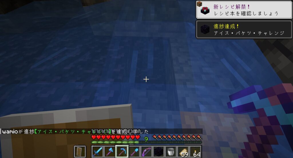 黒曜石を掘っても、すぐ下にある溶岩に落ちて消えちゃうので、水中採掘法で採掘する。