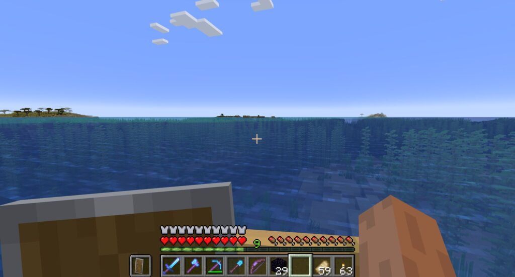 いままで2回やって2回とも、本拠地から直線状にある海を渡ったところにネザー要塞があった。公式にはそんな情報はないのだが、バイオームの境目にありがちとか、何か法則性があるのかもしれないので、海の向こうはまず試してみよう。