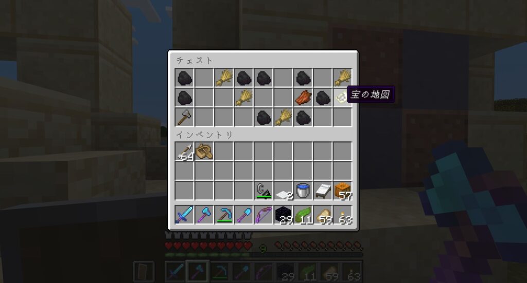 交易所に、拾ってきた醸造台とか、職業ブロックを増やす。