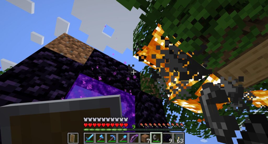 ネザー要塞を探すにはネザーに行く必要があり、ネザーに行くにはネザーゲートが必要で、ネザーゲートを作るには黒曜石が必要である。