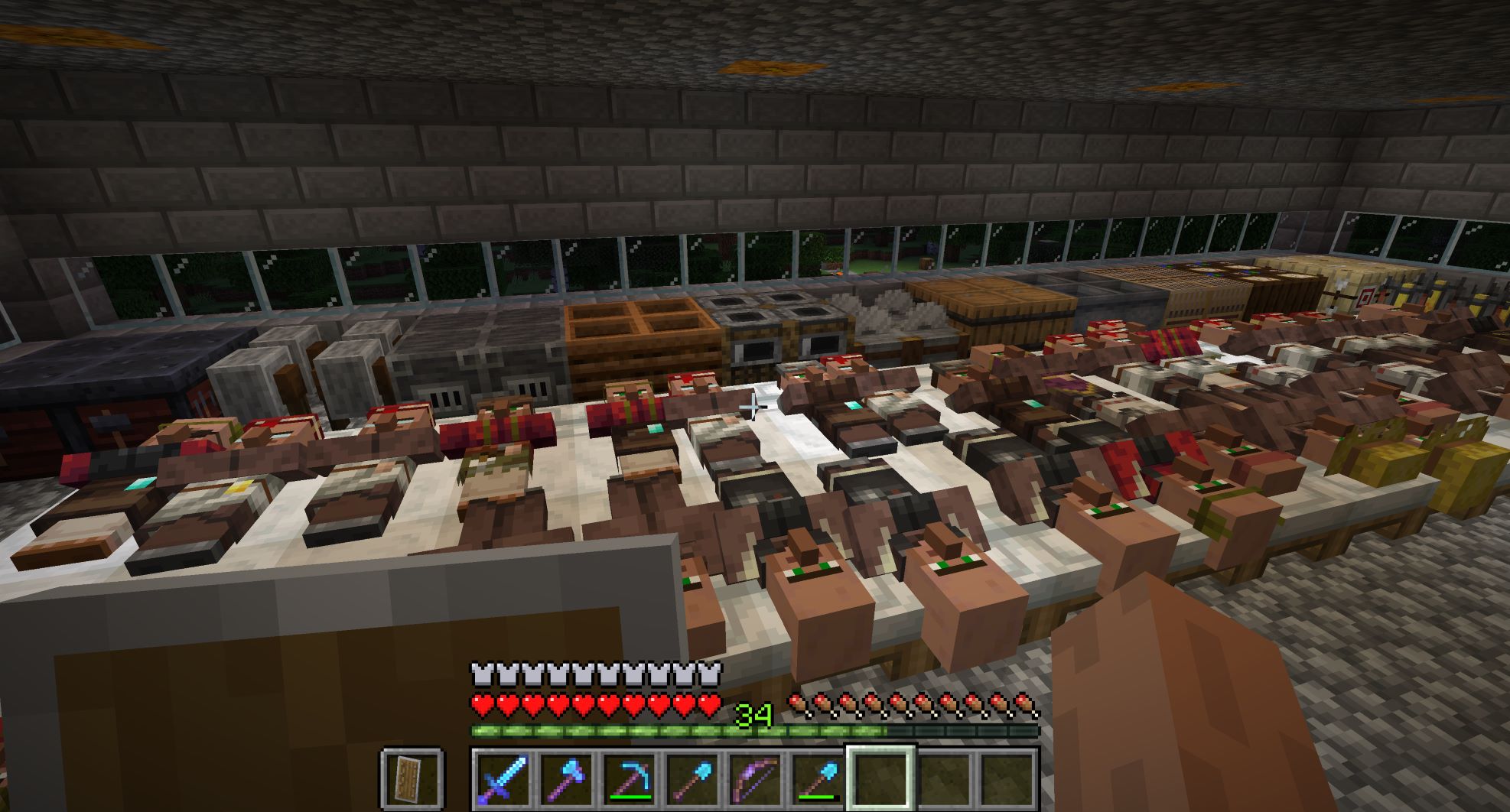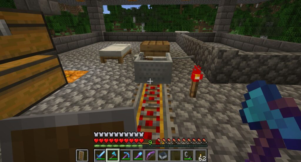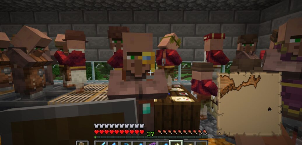 序盤の目標、アイアンゴーレムトラップと交易所はできた。