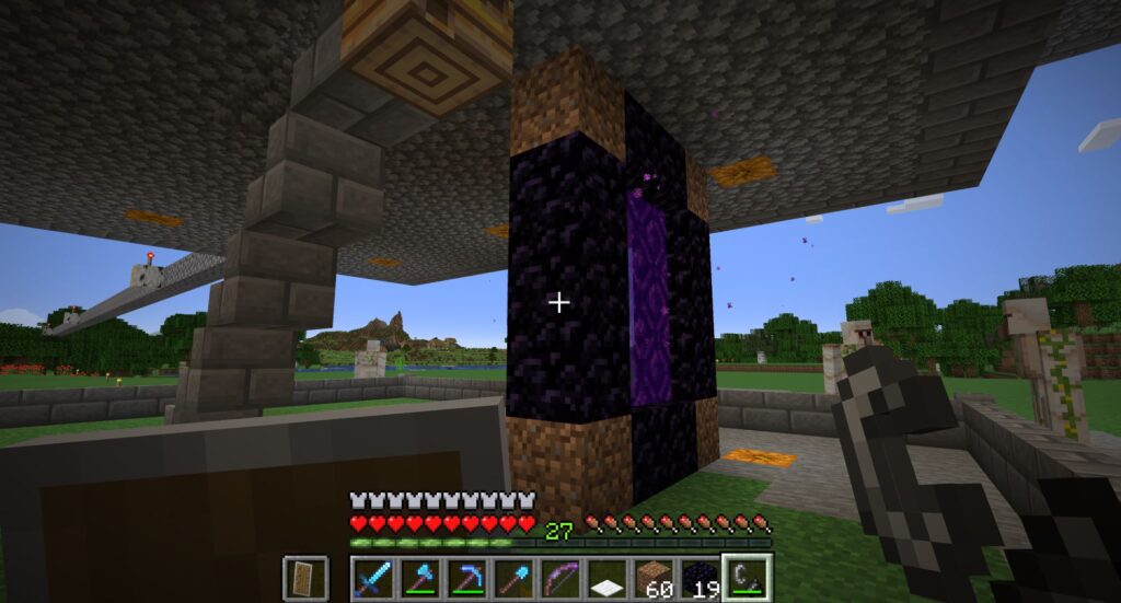 村でもネザーポータルを建てる。