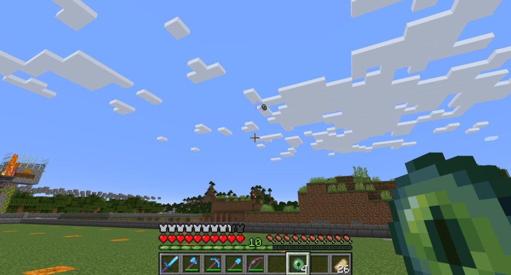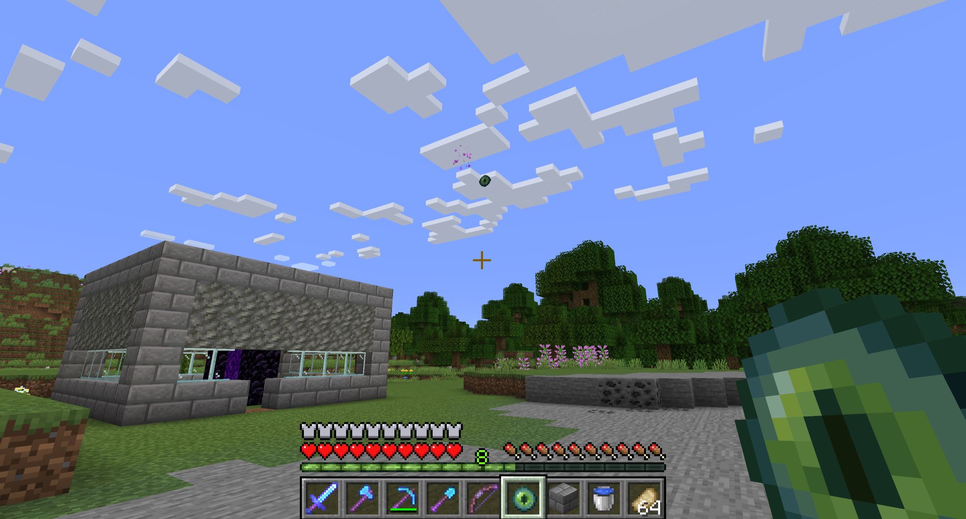 えいっとエンダーアイを投げると、飛んだ方向は「本拠地」の方向だった。