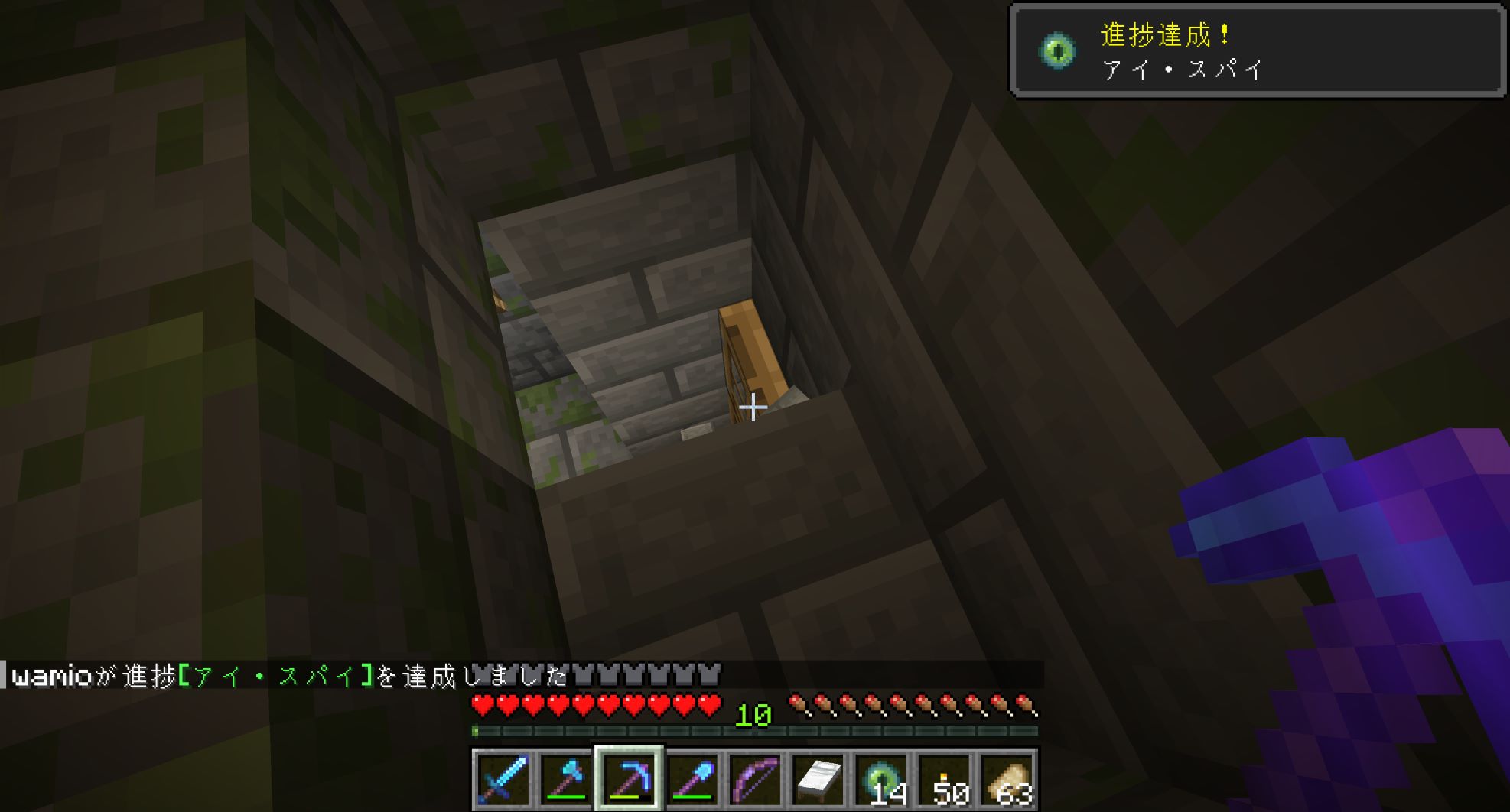 鉄を売ったエメラルドで買ってきたエンダーパールでクラフトして、エンダーアイを作った。