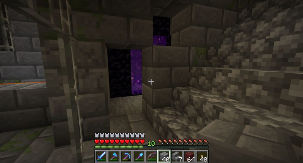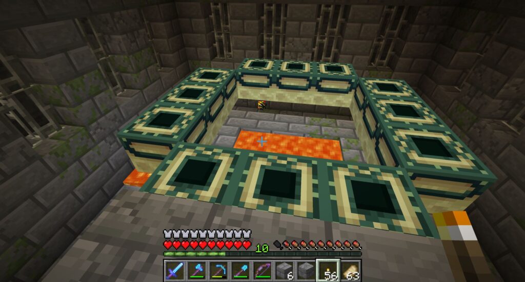 通路からみて、あのガラス屋根がエンド要塞につながるネザーゲート。