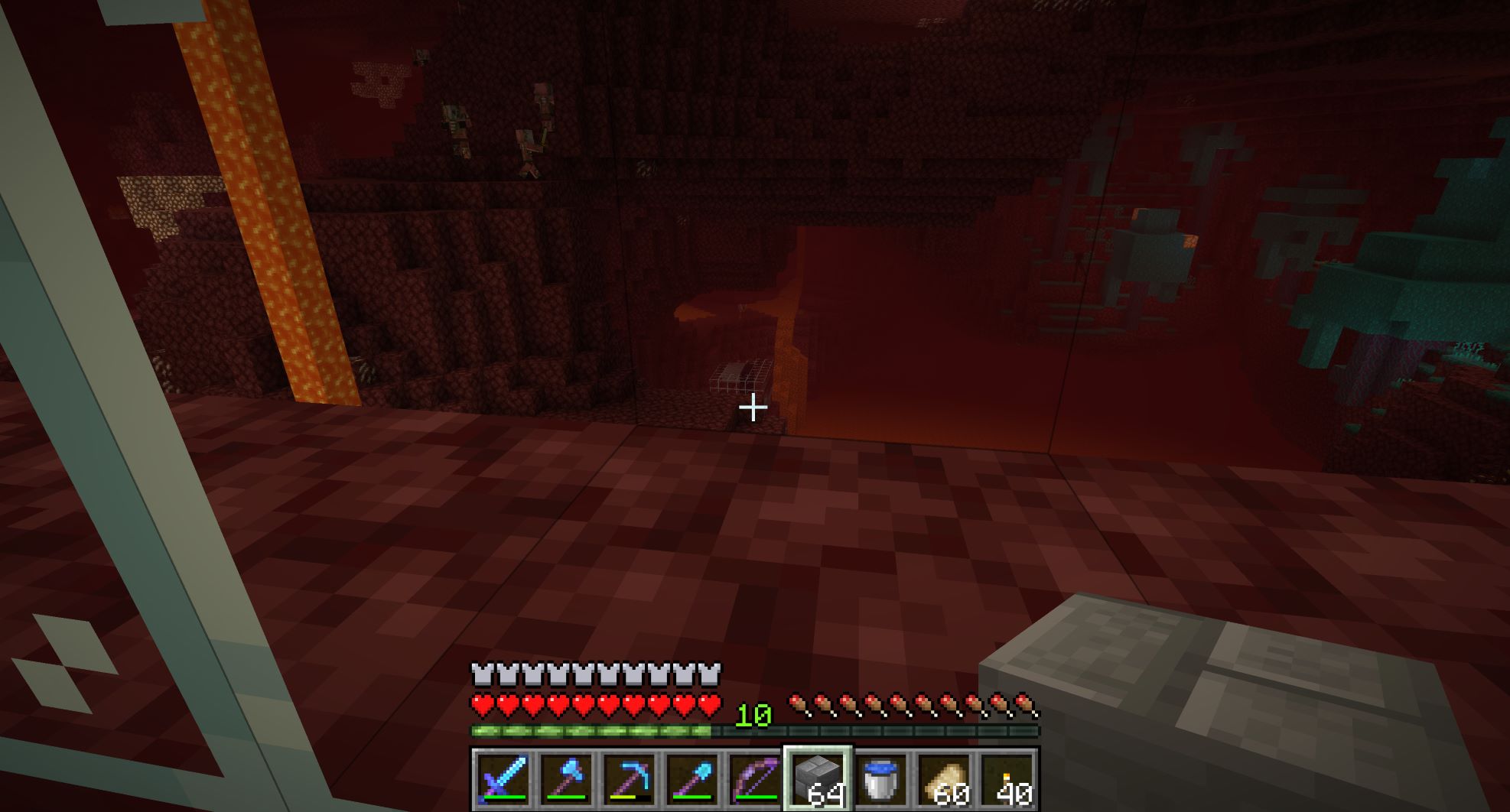 本拠地とネザー要塞の間はガラスの通路を建設してあるので、中間地点あたりでネザーゲートを作ってオーバーワールドに出る。