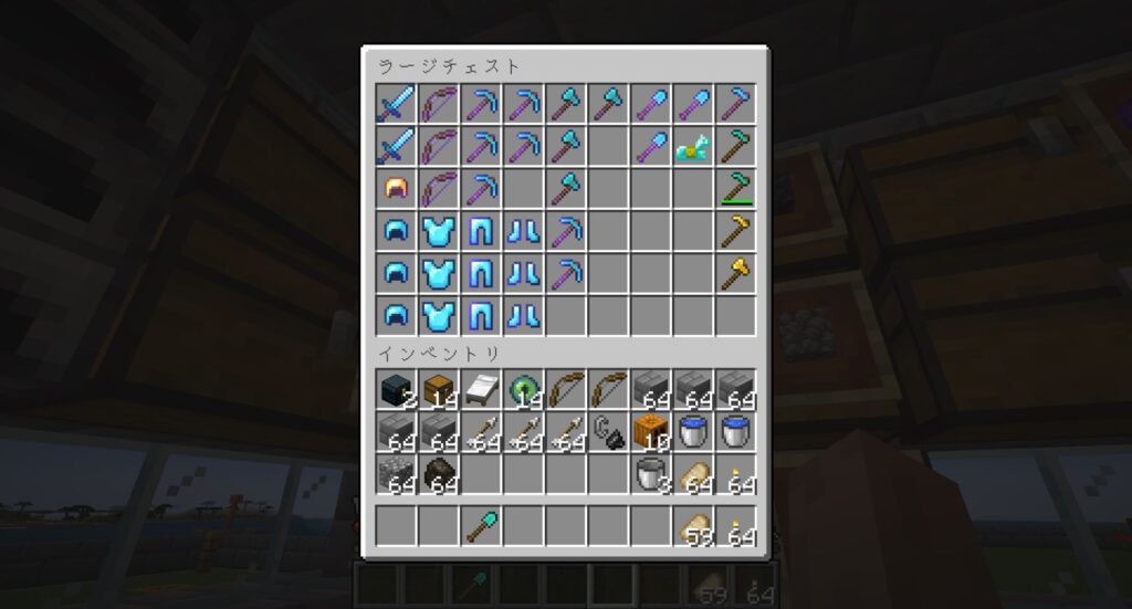 いったん本拠地に戻って、エンダードラゴン討伐の準備をする。