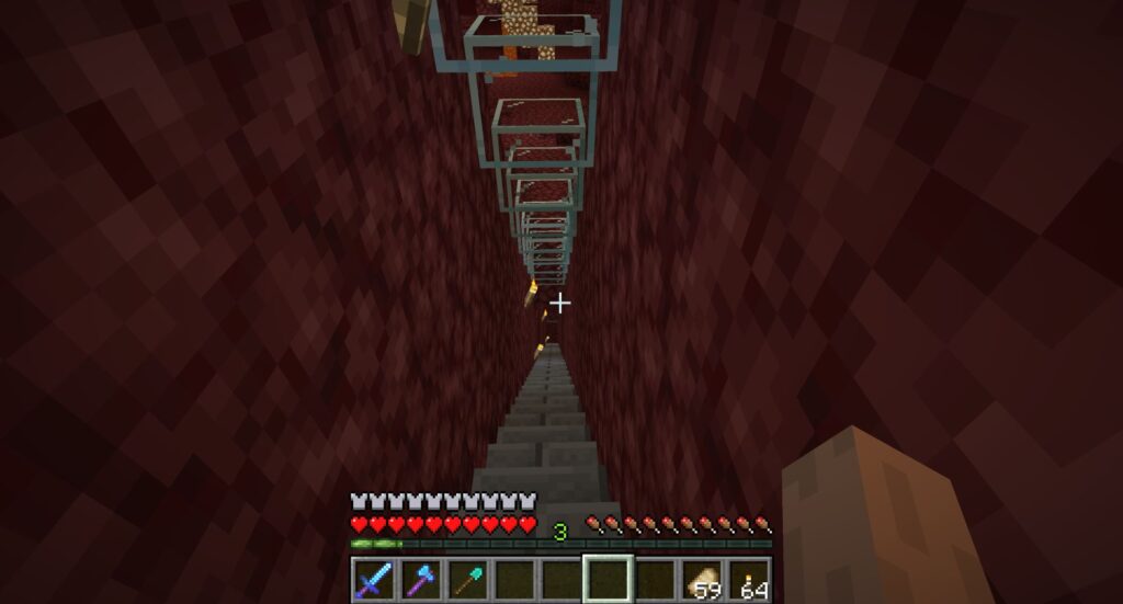エンド要塞を見つけたので、ネザー通路を分岐させて接続する。